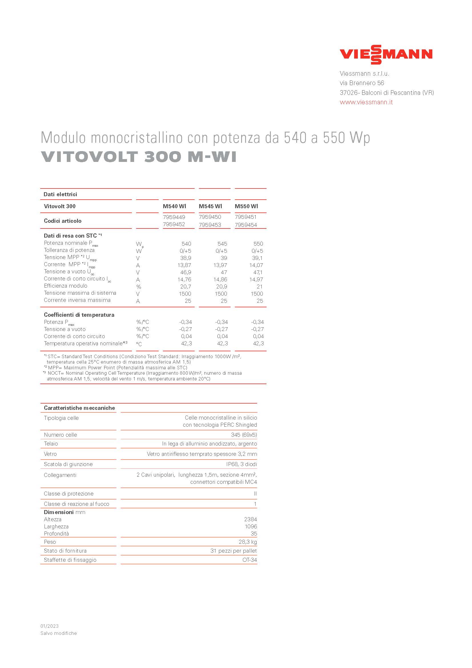 Modulo monocristallino con potenza da 540 a 550 WpVITOVOLT 300 M-WI