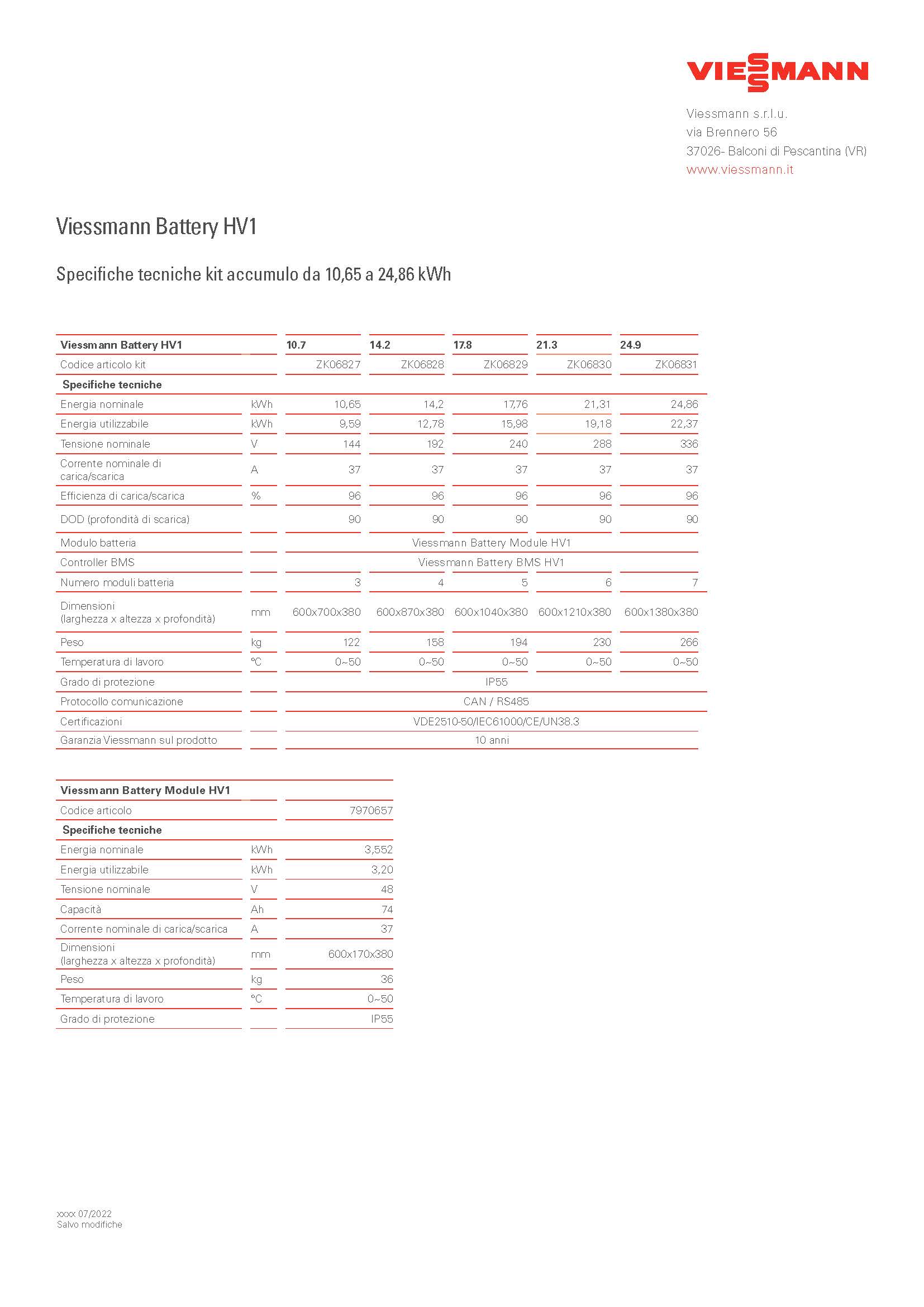 Batterie al litio ad alta tensione per Viessmann Hybrid Inverter B-1 e A-3VIESSMANN BATTERY HV1 Download Visualizza 🖥️ Gallery ⇓